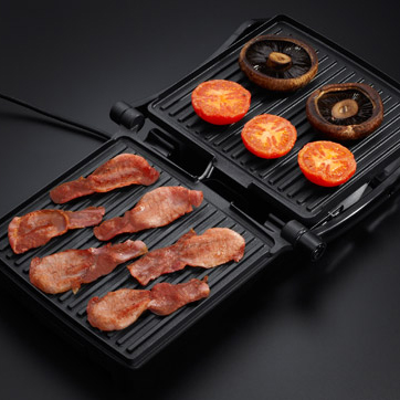 Наслаждайтесь едой, приготовленной своими руками: этот многофункциональный аппарат работает в одном из трех режимов, в зависимости от положения верхней панели. При установке панели в горизонтальное положение его можно использовать как бутербродницу, под углом – в режиме гриля, а при развороте пластины на 180° аппарат можно использовать в качестве сковороды.